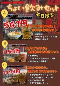 今日もコロナに負けるなちょい飲みプランご用意しておりますので!サクッといかがでしょう!